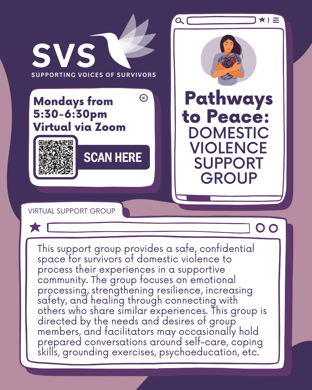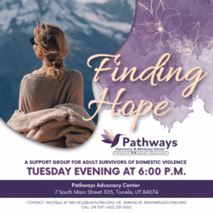 Our Finding Hope Support Group is for the community to help overcome feelings of isolation and create a supportive environment where individuals can openly discuss the effects of domestic violence and sexual assault on themselves, their families, and the broader community. Meetings are held every Tuesday from 6 to 7 p.m. at Pathways Advocacy Center.